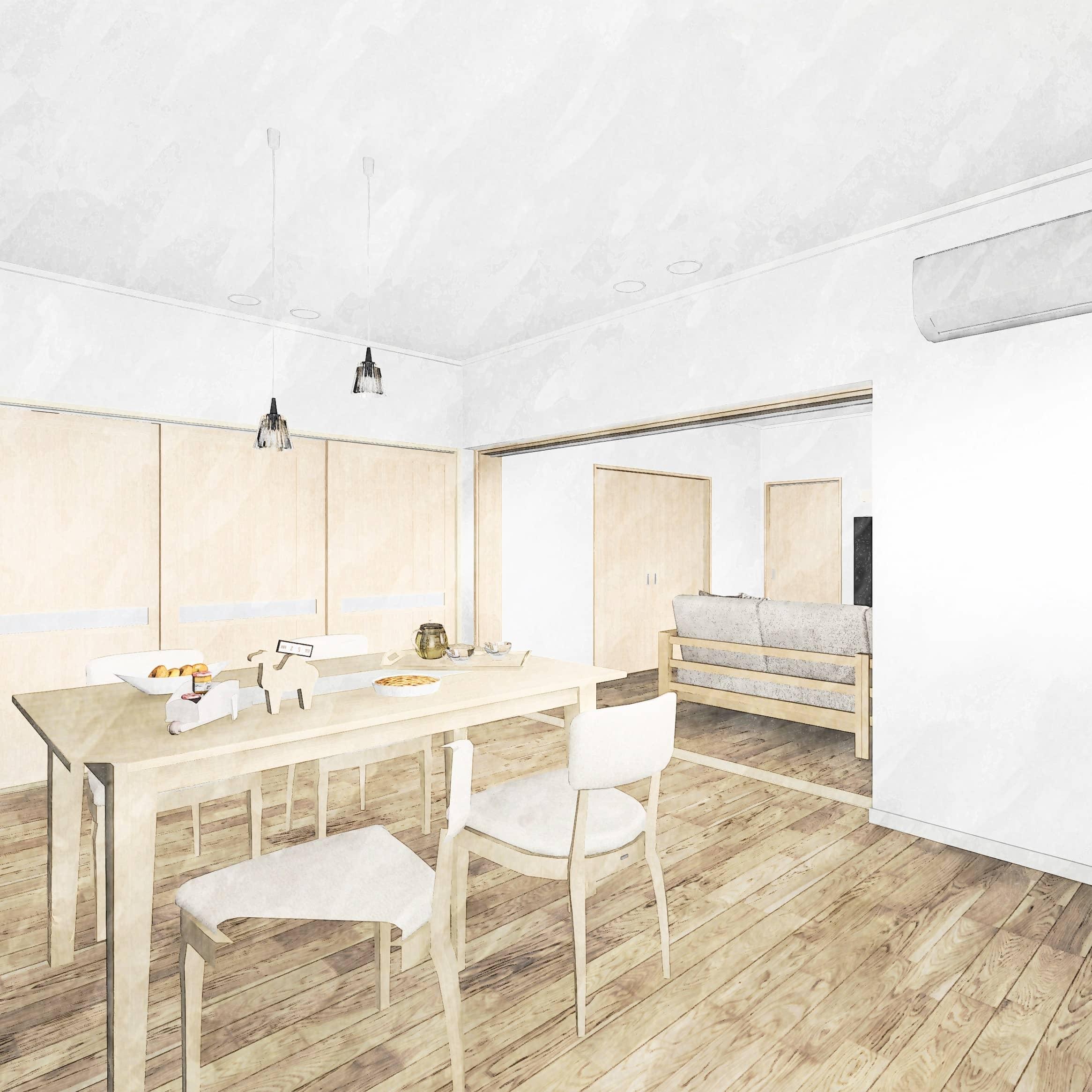 長年住み継がれてきた和の趣ある住まいを、これからも健康で快適に暮らせるよう、断熱性能等級4相当の高性能仕様へと一新しました。構造への負担を最小限に抑えながら、家族が自然と集う広々LDKに仕上がり、和の雰囲気を引き立たせるこだわりの建具や、やわらかな光を取り込む大開口サッシが、明るく心地よい空間を演出しています。寝室やLDKの各所には可動棚収納や室内窓を設け、暮らしやすさとデザイン性を両立しました。