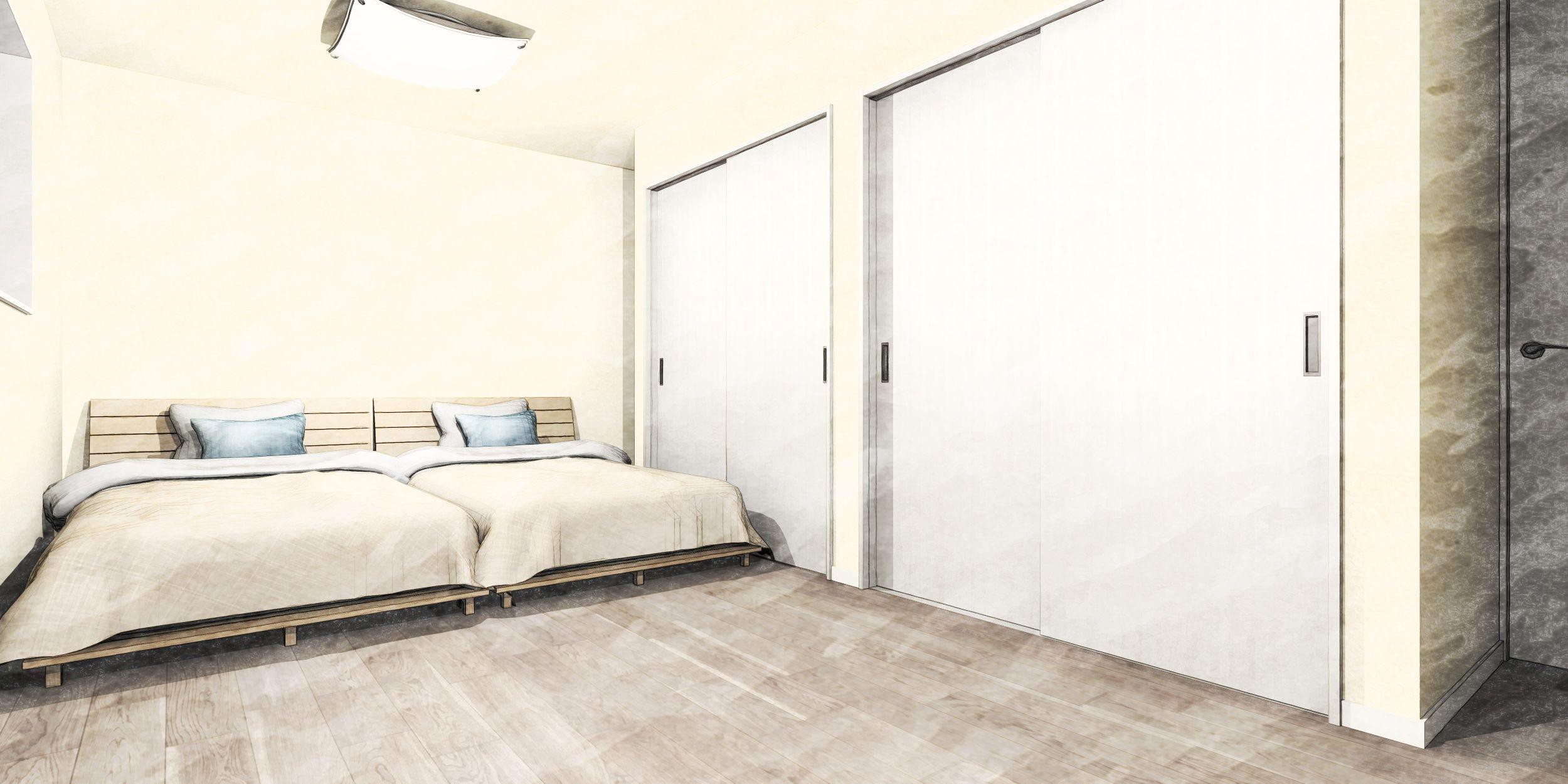建物右側に親世帯用の玄関を設け子世帯と生活スペースを分けた安心設計。1階は13.6帖の広々LDKを中心に、廊下まで取り込んだ開放的な寝室へとリフォームしました。引き戸を採用し、将来も安心のバリアフリー仕様に。浴室・洗面・トイレも完備し、 階段を使わずに生活が完結する快適な住まいです。