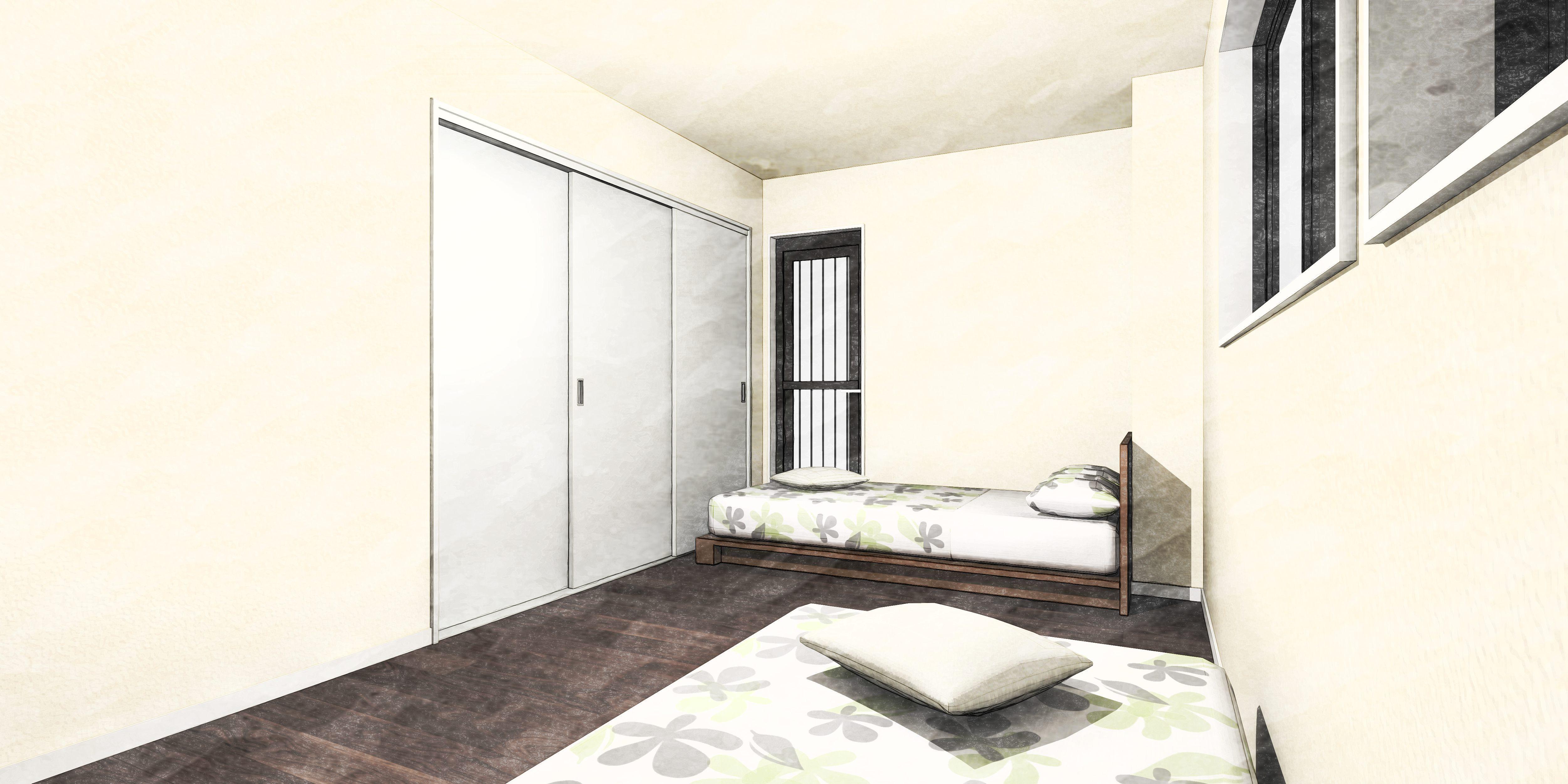 庇付きの明るい玄関が子世帯の入口。雨の日も安心で、親世帯と分離した独立設計です。バルコニーに面した12帖のLDKは、光と風が心地よい家族の憩いの場。寝室は落ち着きのある空間に、寝具や衣類をすっきり整頓できる収納も確保しました。2階に水まわりを備え、親世帯との生活リズムの違いを気にせず快適に過ごせる設計。内階段でつながりながらも程よい距離感を保てる快適な住まいです。