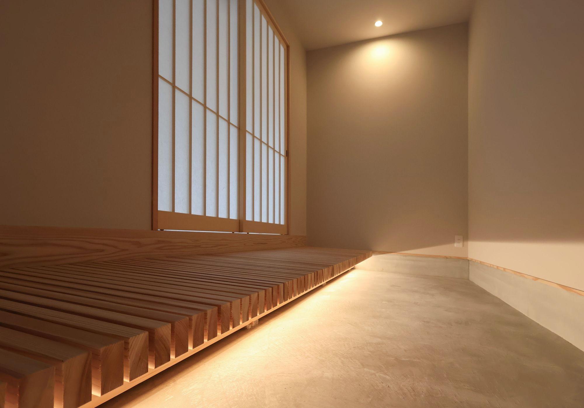 土間と濡れ縁を作り、足元を間接照明で照らしたい
